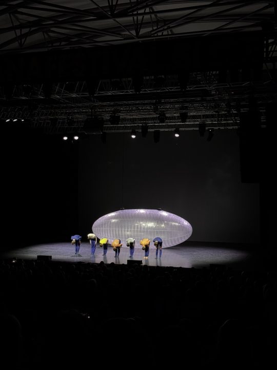 Predstava se je začela s Proof, zame top odločitev. Ravno pravi “kick”, da te potegne noter in dvigne tisto prvo radovednost. Tak občutek imaš, kot da sediš v prvi vrsti nečesa, kar ne želiš, da se konča. Najbolj presenetljiv trenutek? Ogromen napihnjen zepelin, v katerem se je prikazal gol moški. Morda prispodoba maternice, rasti, razvoja? Interpretacija je prepuščena vsakemu posamezniku, ampak vizualno pa je bilo izjemno.