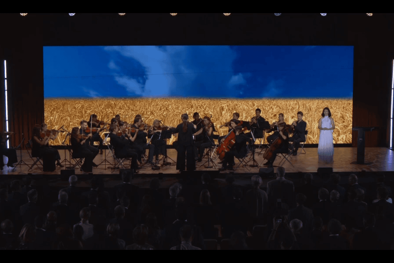 Blejski strateški forum 2022 se je tokrat slovesno začel ob glasbeni spremljavi ukrajinsko-slovenskega mladinskega godalnega orkestra “Music for the Future”. Na forumu so bile prvič v ukrajinščino prevedene besede himne Evropske unije “Oda radosti”, ki jo je zapela Maryna Dolibets, udeleženka našega humanitarno-umetniškega projekta iz Žitomira.